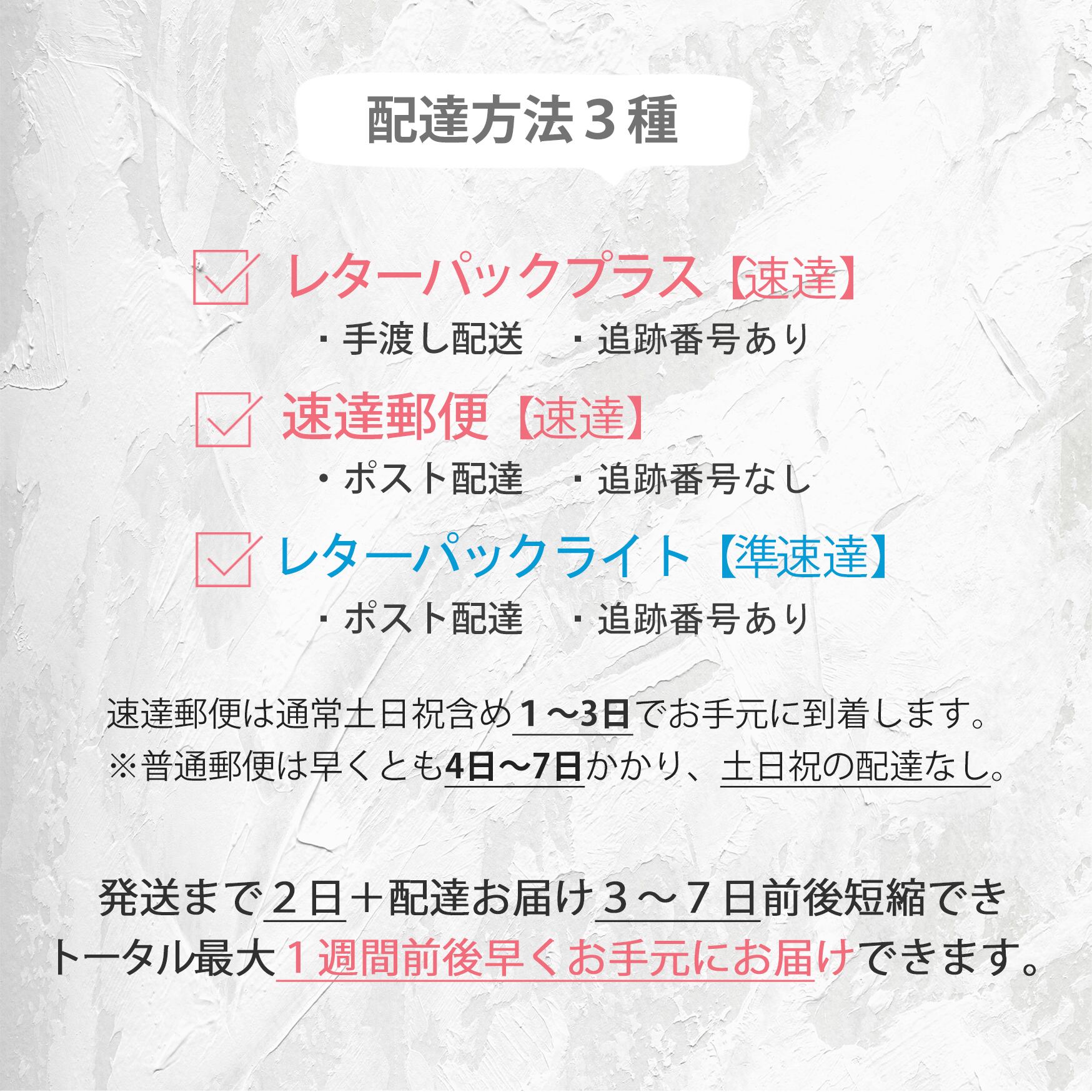 *速達は、発送日から1日〜3日ほどでお届け◎