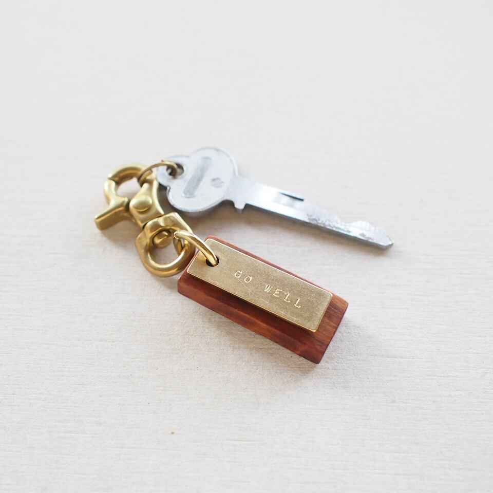 持ち続けるほどに味わい深くなる真鍮無垢と屋久杉のお守りキーホルダー。