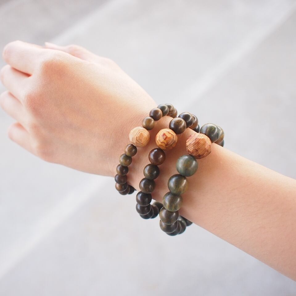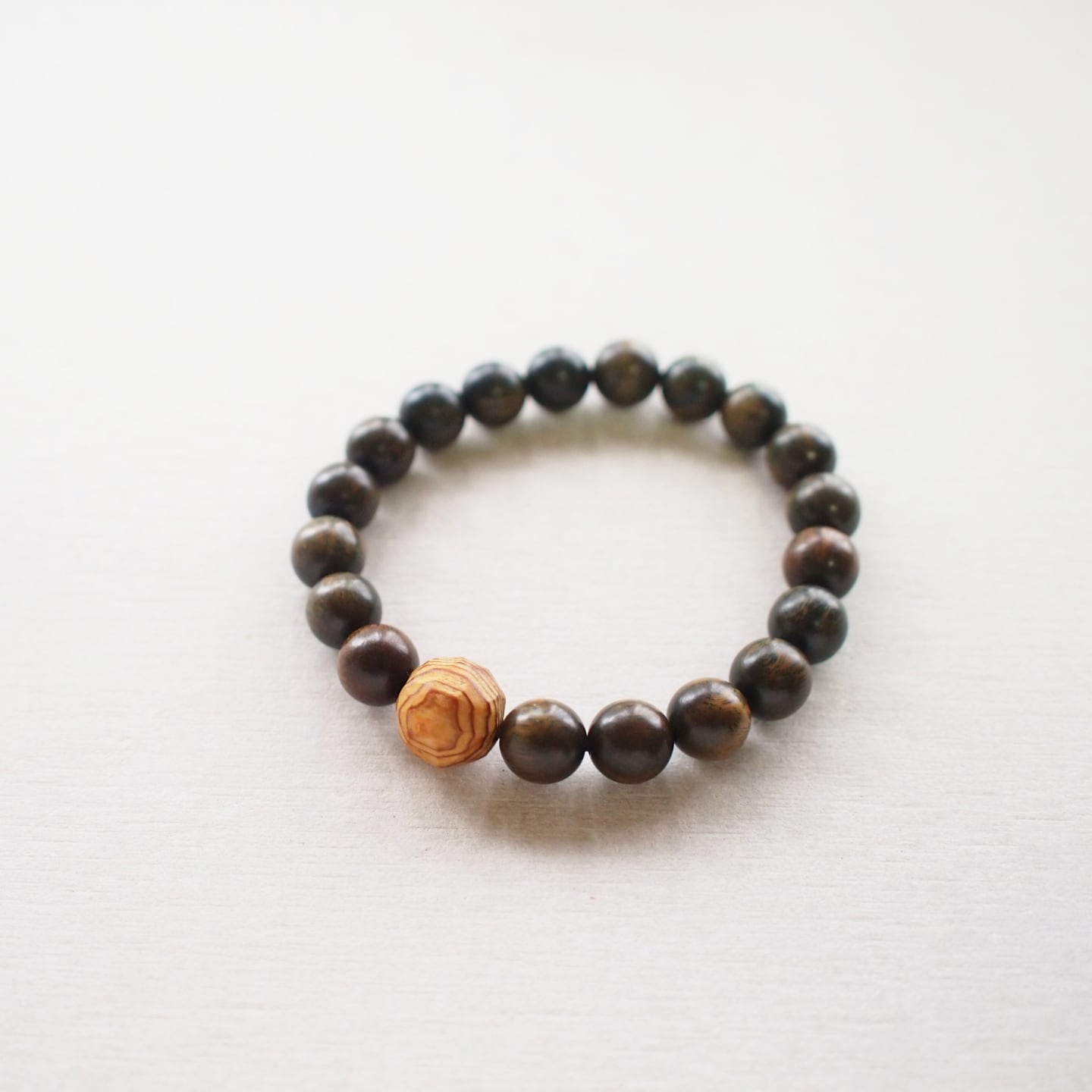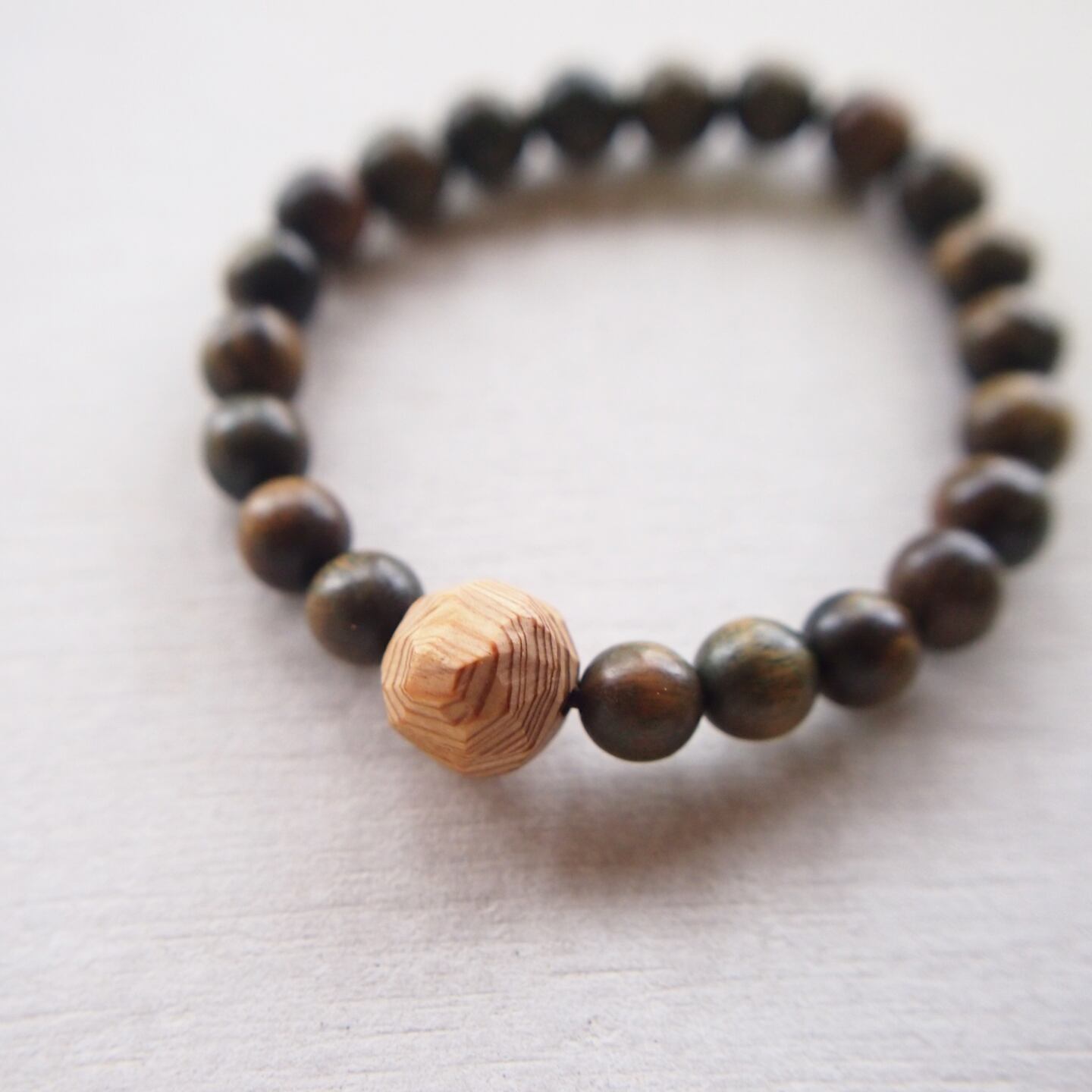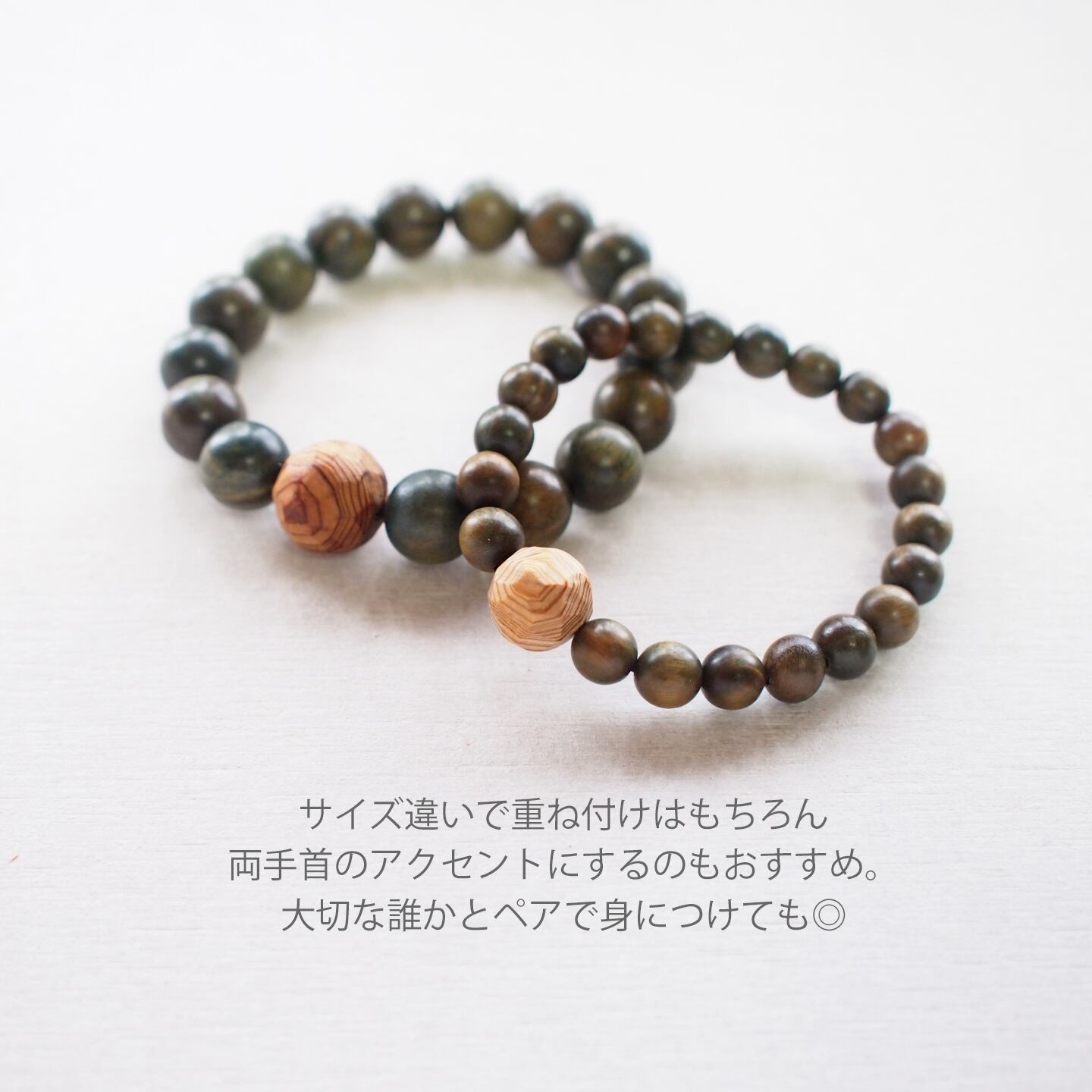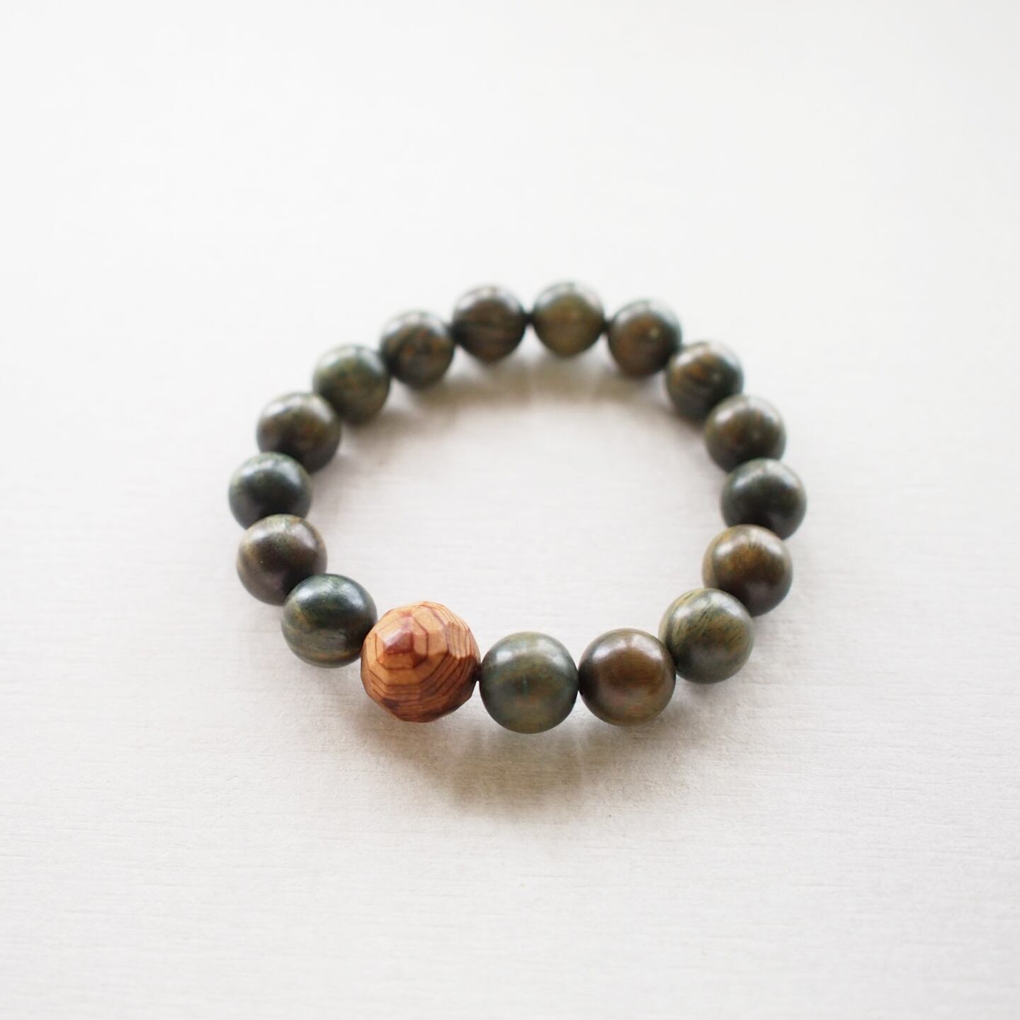 【緑壇8㎜珠・10㎜珠・12㎜珠】BRACE 【屋久杉×緑壇|手削り】 ● 屋久杉/ブレスレット