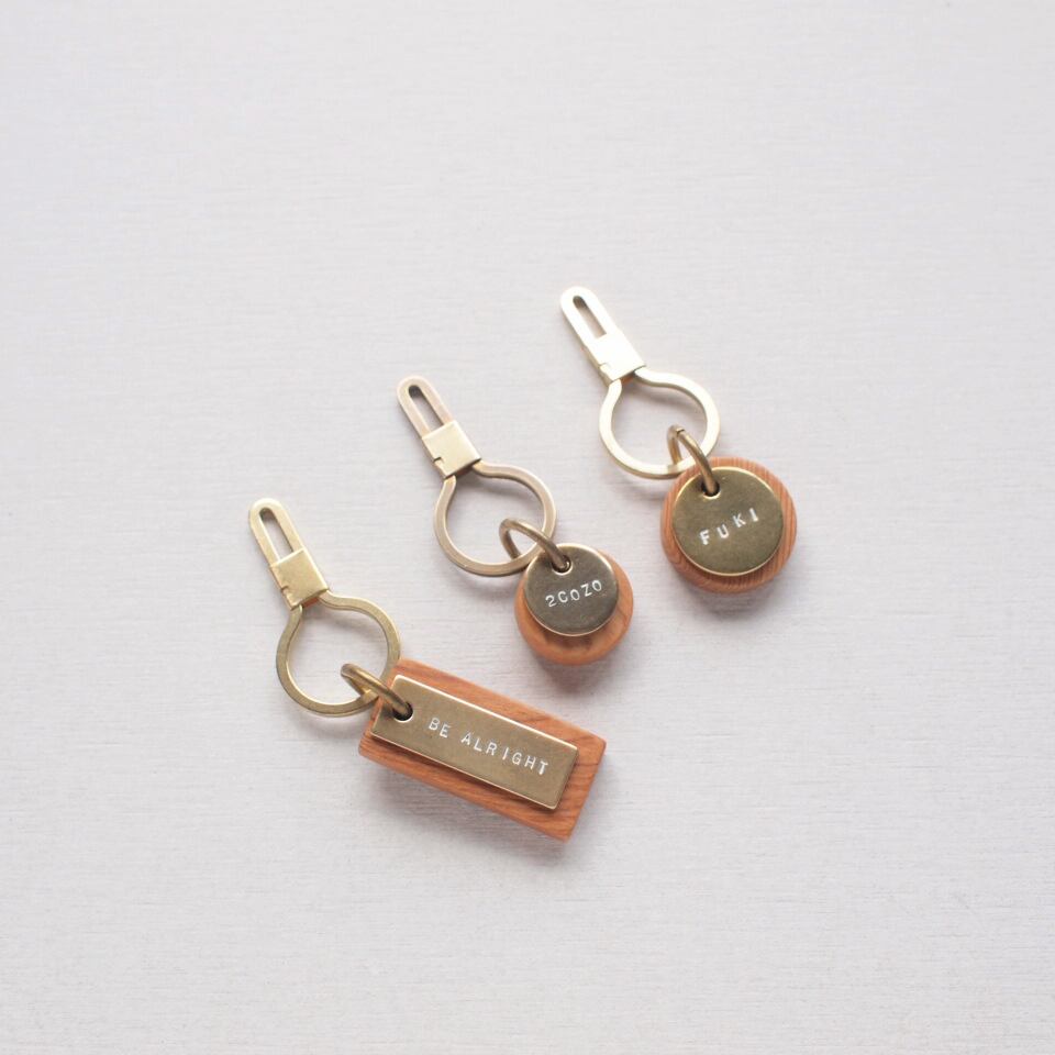 持ち続けるほどに味わい深くなる真鍮無垢と屋久杉のキーホルダー。