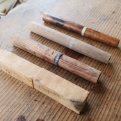 機械ろくろを使わずに切り出し小刀でけずり出した木軸は、きっちりした正円ではなく森に立つ木のようなゆらぎのある円柱です。