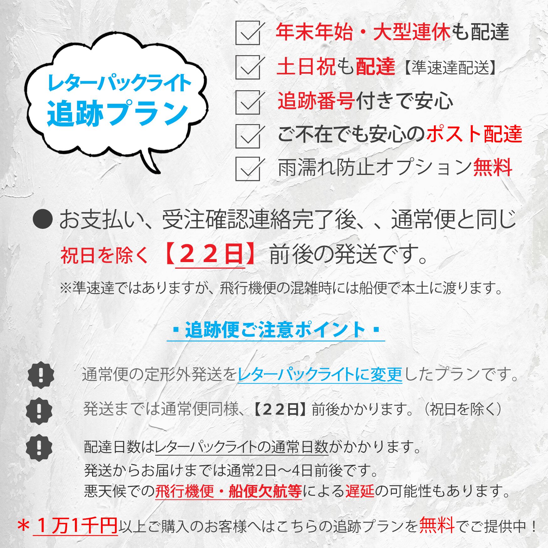 *1万1千円以上ご購入のお客様へはこちらの追跡プランを無料でご提供中!